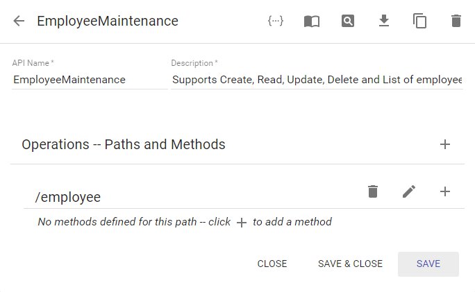 The GET method is used when requesting (information about) a resource or a collection of resources. POST is used to create a new resource instance without an existing resource id, and PUT is used when creating or updating a resource using a existing resource id. Finally, DELETE is used to indicate that an existing resource should be deleted. Most other operations would use the POST method. In this example, {employee-id} is a path parameter – a placeholder for a value that will be supplied by the caller.