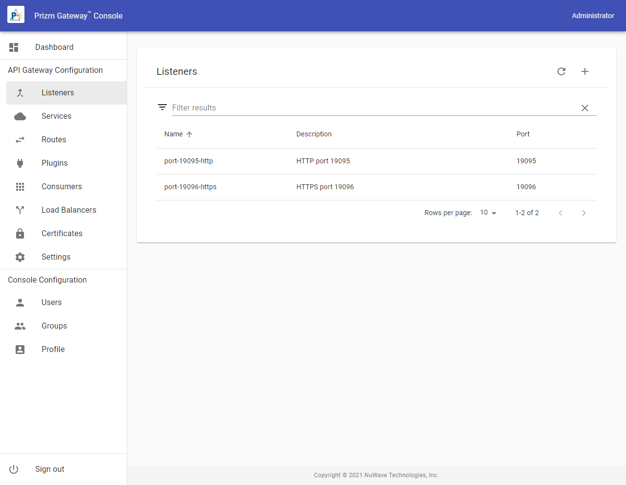 Listeners define which TCP/IP ports the gateway will listen on, and defines the properties of those ports such as whether the port supports TLS and HTTP2, etc. HTTP requests enter the gateway through Listeners. To access the Listeners list, select Listeners from the Menu.